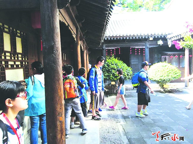 7月17日,在我市南宅子门口,26名来自青岛的小朋友刚刚结束3天的夏令营活动,恋恋不舍地踏上了归程。上小学五年级的蒋思成告诉记者,15日至17日三天时间里,他们学习了历史悠久的伏羲文化,尝到了多种多样的天水小吃,参与妙趣横生的乡村游戏和农耕活动等。滚铁环、打陀螺、跳格子、丢手绢、老鹰抓鸡等经典游戏,让参加夏令营的家长与小朋友玩成了一片。