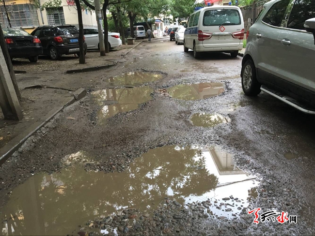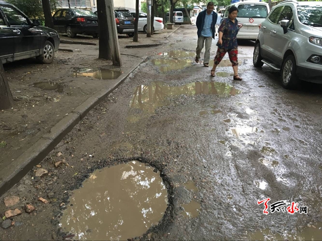 18时许,雨早已经停了,可在秦州区罗玉小区三星公司附近的几个小巷内却都泥泞难行。记者看到,有段长约400米的巷子内接连有好几个大坑,居民只能从水坑遍小心翼翼的通行,还要时刻注意身边通行的车辆。