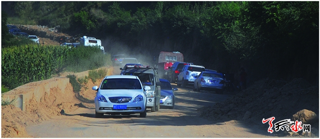 走高速是堵车,上山绕道行车也堵还得吃土,这真是让人闹心。(天水晚报记者 韩铁英)