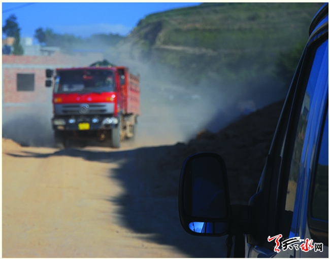 看着车窗外呛人的尘土,客车司机关起窗户,打开空调,一位乘客抱怨道:“空调吹出来的冷风都是一股土味儿。”就这样从甘谷下高速再到关子镇上高速,客车行驶花了一个半小时。