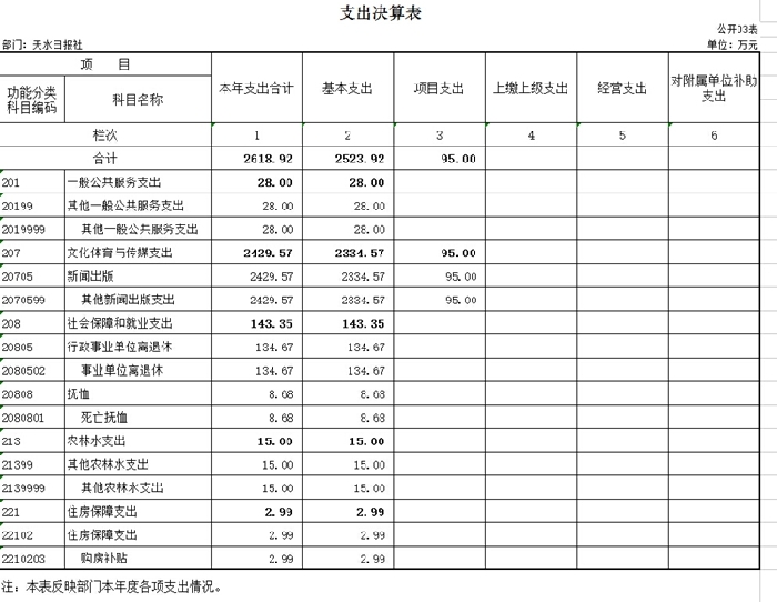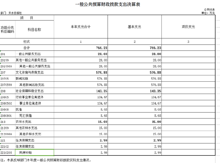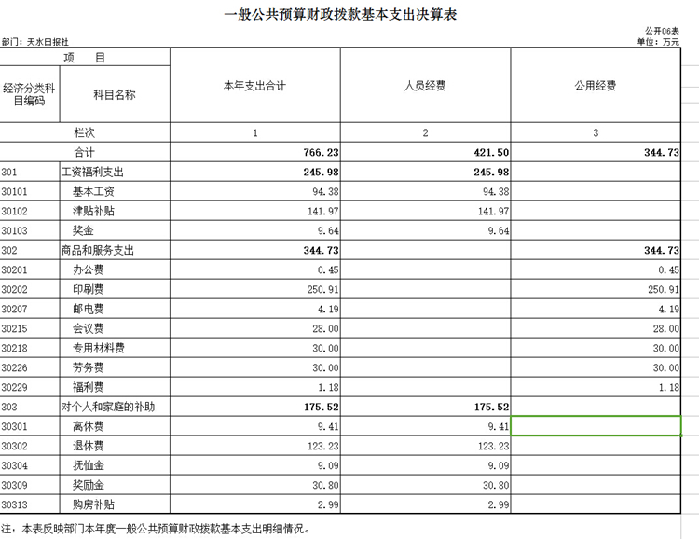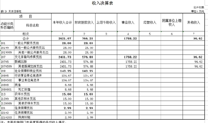 天水日报社2015年度部门决算收支公示