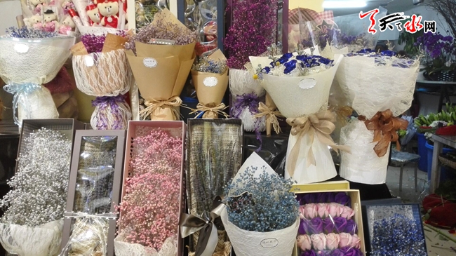 “七夕”前夕,我市许多花店推出鲜花预定活动,价格由100多元到一千多元不等 ,象征爱情的红玫瑰“LOVE”、卡通花束、长生花以蓝色妖姬普遍受到市民的喜爱,提前预热甜蜜经济。