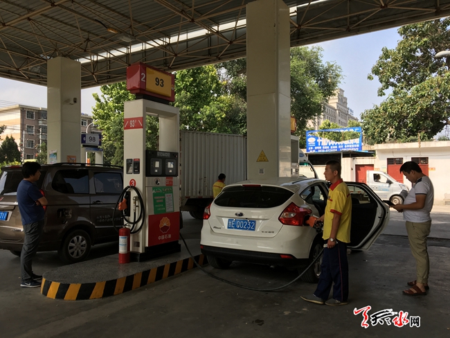 天天天水网8日12时讯【记者 裴婷婷】据发改委通知,自2016年8月4日24时起,汽油下调220元/吨、柴油下调215元/吨。8月8日,记者从我市个加油站了解到,我市油价已经下调完毕。目前,93号汽油每升5.51元,吨价是7351元,97号汽油每升5.89元,吨价是7767元;0号柴油每升5.11元,吨价是6015元;运输公司93号每升5.29;97号每升5.67;0号每升4.85。