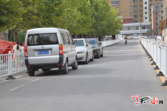 天天天水网12日12时讯【记者 常亮】8月12日中午,记者途径秦州区师院路时看到,在位于新修好的师院路机动车道内有几辆私家车在道路上随 意停放,使本不宽裕的机动车道变得更加狭窄。