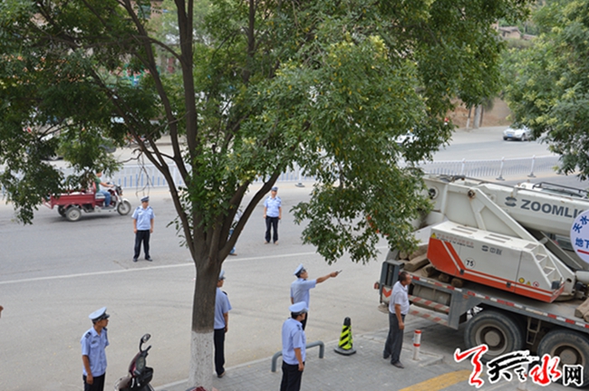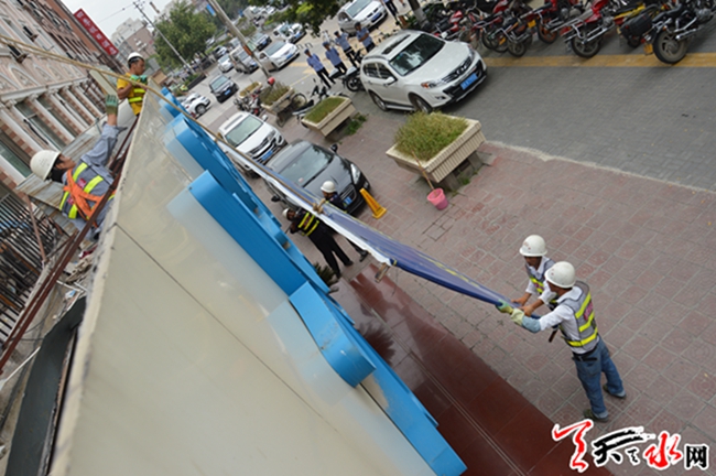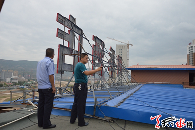 天天天水网讯【通讯员周维元】8月12日,秦州区执法局组织执法人员,依法对羲皇大道男科医院楼顶3块大型户外广告牌进行拆除。