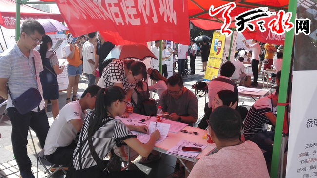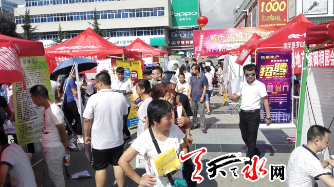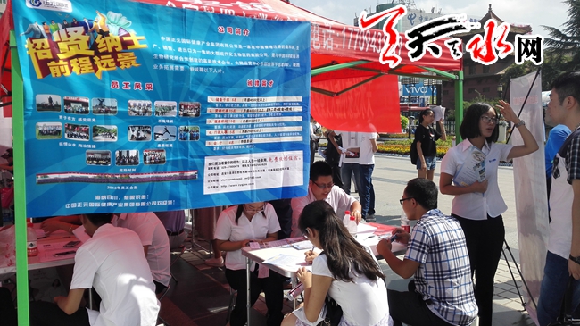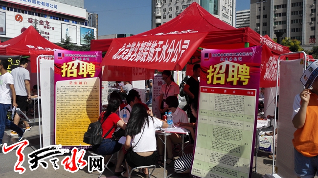 天天天水网13日10时讯【记者 杨璟】8月13日上午,天水市2016年秋季青年就业专场招聘会暨高校毕业生洽谈会在市龙城广场举行。来自北京、陕西、甘肃等省市的企业参加了招聘会。