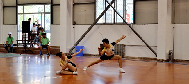 (天水代表队参加有氧舞蹈规定操和混合双人操预赛)