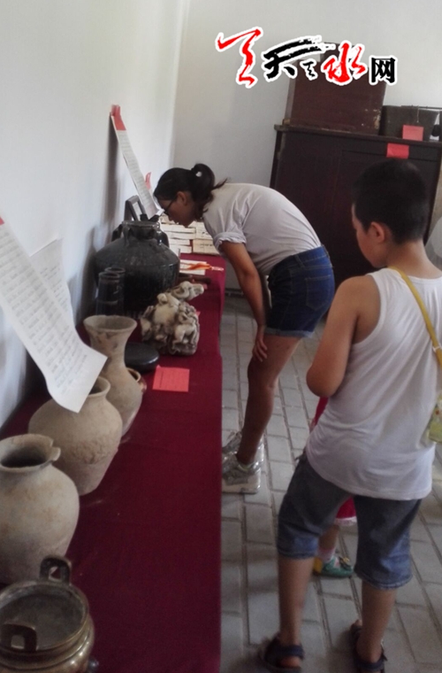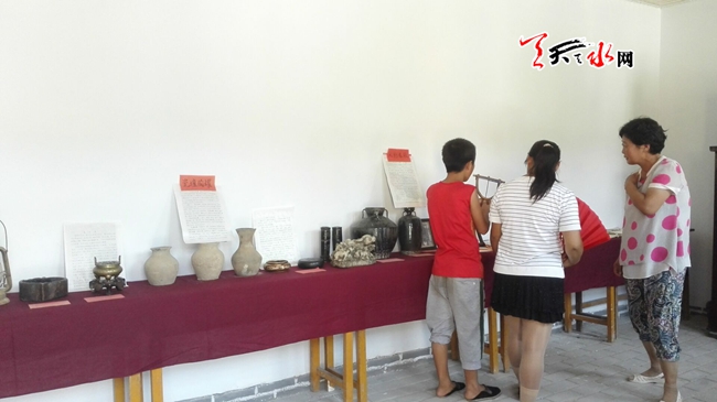 天天天水网15日14时讯【记者 王雪梅】8月15日上午,游客们在清水县郭川镇赵那村史馆参观。记者了解到,赵那村史馆里所陈列的几百件藏品都是村民们自愿集中到一起的,总共有七个陈列馆,藏品涵盖各种古家具、农具、社火道具及古文物、老旧报纸等,品种齐全,涉及范围广,把赵那村的发展演变表现得淋漓尽致。