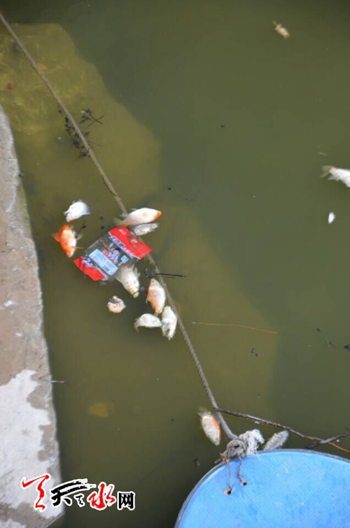 天天天水网讯【记者 张文都】近段时间以来,天水市出现持续高温烘烤天气,近一个月未曾下一场酣畅淋漓的大雨 ,天水湖上游出现断流、干涸现象,因缺少源头活水的补给,天水湖水变得腥臭污浊,湖水缺氧出现鱼群死亡现象。