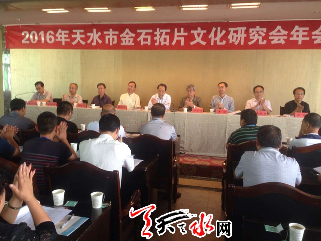 天天天水网讯【记者张超】8月28日上午9时,天水市金石拓片研究会2016年年会在广电宾馆14楼举行,来自我市的金石拓片爱好者50余人参加年会,市政协副主席安志宏和王振宇两位市领导参加会议。