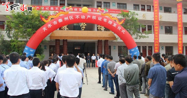 不动产统一登记工作是一项民生工程,涉及千家万户,事关群众切身利益。秦州区以更加便民高效的服务方式,更加科学规范的登记流程,更加阳光透明的操作规程,全力推进不动产统一登记工作扎实有序开展,依法保障不动产权利人的合法权益,服务全区经济社会发展。秦州区首批不动产权证书颁发仪式的举行,标志着该区结束了土地、房产、林地等不动产分散登记的历史,不动产登记工作进入全面明晰产权、有效保护权益、提高服务效率的崭新阶段。