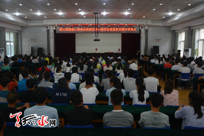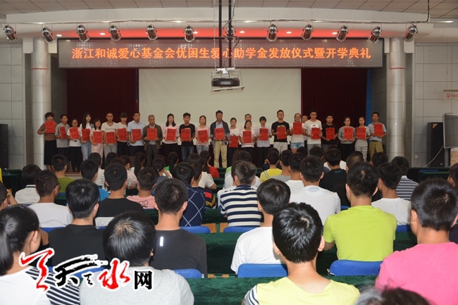 当日,在秦州区高考复读四部举行的浙江和诚爱心基金会优困生爱心助学金发放仪式暨开学典礼上,该校今年考取苏州大学、兰州交大、大连外国语大学等高校的23名优困生,领到了由浙江和诚爱心基金会资助的4000元至10000元不等的爱心助学金,合计13.1万元。