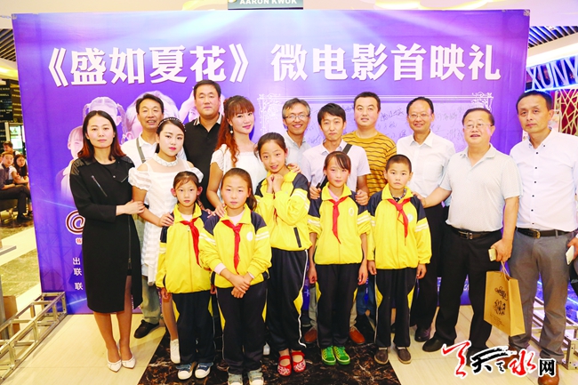 天天天水网讯【记者甄娜】9月3日上午,由天水市委组织部出品,中国微小说与微电影创作联盟、北京微然心动传媒有限公司、天水66号文化创意园、天水唯尔影视传媒联合出品的微电影《盛如夏花》,在秦州区太平洋电影城举行首映礼,该片由天水日报社青年记者韩铁英担任导演。