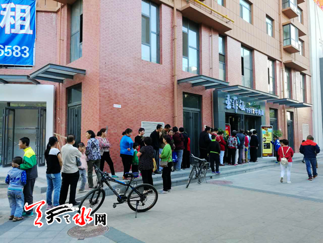 天天天水网11日8时讯  【记者 甄娜】9月11日一大早,一家新开业的牛肉面馆门前就排起了长队,原来是商家为了宣传,特价推出一元一碗,吸引群众品尝。