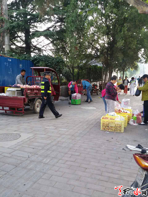 天天天水网讯(通讯员李红娟)近日,秦州区执法局东关中队结合城市八乱专项整治活动,对岷山市场口的流动摊点进行集中管理规范。