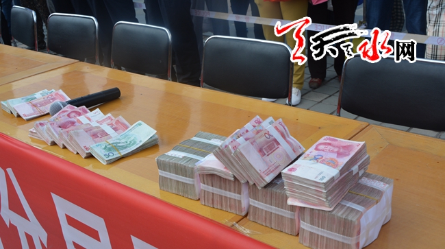 天天天水网讯【记者邵兰霞】9月13日下午,秦州公安分局在市龙城广场举行涉案赃款赃物公开返还大会暨破案会战宣传活动,现场返还现金48.7万元,30名受害人领到丢失的财产及物品,共计价值95万余元。