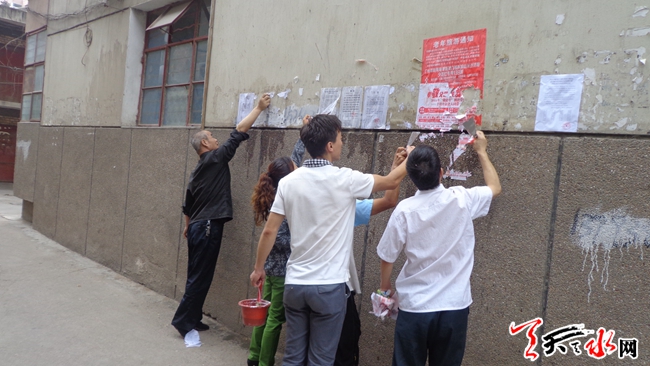 此次环境整治主要针对辖区内主干道沿线及楼栋周边的垃圾死角、铲除墙上及电线杆上的“牛皮廯”,确保道路墙面清洁。一大早,社区工作人员对路段进行了分工,大家便按照分工,带上扫帚、簸箕、小铲子、刷子、水桶、涂料等工具,开始彻底清理墙体小广告、清除楼道杂物和卫生死角。一些居民也受到感染,自觉加入环境卫生整治活动队伍中来,为打造干净整洁的小区环境献一份力。同时,社区工作人员还向辖区居民群众积极宣传环保理念,大力倡导科学、健康、文明的生活方式,引导居民群众告别陋习,从我做起,从小事做起,共同爱护好自己的温馨家园。