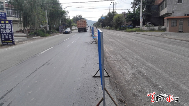 天天天水网19日16时讯【记者 杨晓斌】9月19日下午,记者路过国道316线皂郊镇时看到,国道316线皂郊镇贾家寺至下寨子段,正在进行路面和道沿整修工程,整修路面被半边隔离。虽然顺逆行车道暂时被划定在半边路面上,但交通秩序井然,并未出现堵车现象。