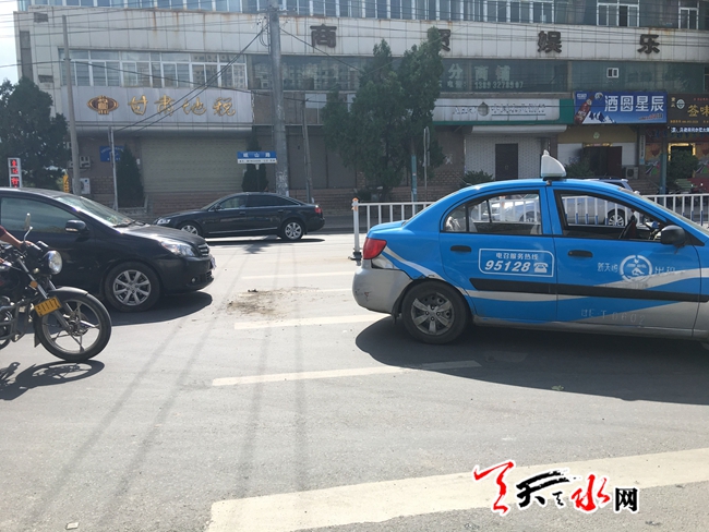 天天天水网23日14时讯【记者甄娜】9月23日,记者看到,路人招手打的,出租车不顾其他一个急刹车冲向路边,于是紧随其后的小轿车来不及反应撞了上去,这是在秦州区岷山路上演的一幕。天天天水网在此提醒,行车在路上,遵守交通规则。
