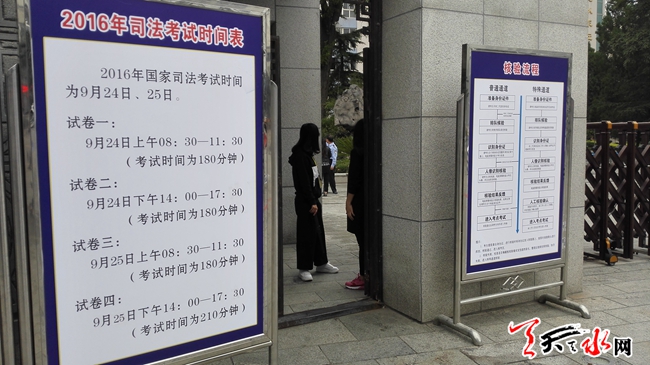 天天天水网讯【记者蔚军平】为期两天的2016年国家司法考试于9月24日至25日举行,天水考区(含天水市、陇南市)的1188名考生在天水市一中参加了考试,报考人数创历史新高。