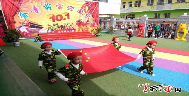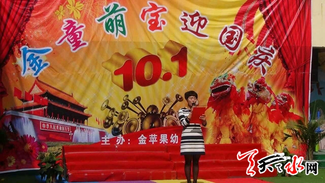 天天天水网30日17时讯【记者 张文都 通讯员 张钺】 九月的末梢,丹桂飘香,在举国同庆喜迎国庆佳节之际,9月30日,麦积区金苹果幼儿园开展了丰富多彩的文艺活动庆祝祖国母亲的生日。