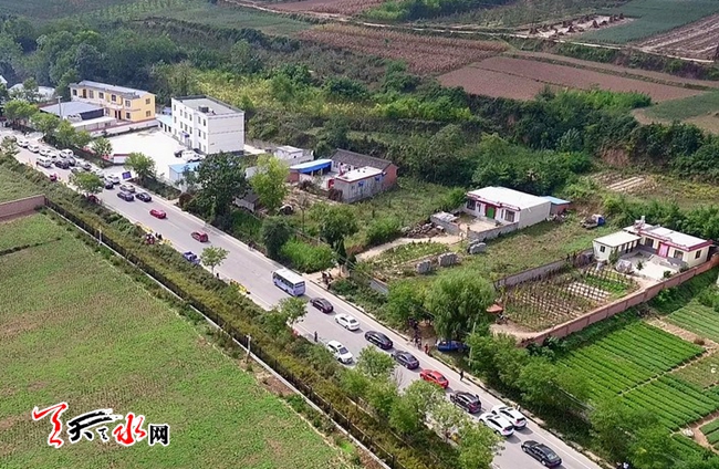 ▲麦贾公路上前往麦积山景区的车辆 2016年10月3日航拍