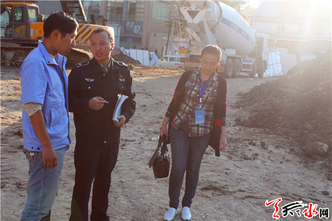 三是全面加强施工工地管理。每天派驻管理人员,对施工工地进行实时监控,督促工地严格落实《环境卫生目标责任书》各项条款,认真落实施工工地“六个百分之百”扬尘治理措施,确保文明施工、封闭施工、降尘施工、硬化施工出入口、设立车辆冲洗设备和沉淀池,防止车辆轮胎带泥造成污染。随时对施工现场进行保洁,保持工地内外整洁,禁止不符合要求的车辆出入施工现场,营造良好的市容环境。对未落实“六个百分之百”施工扬尘治理措施的宏昇等2家工地下发了整改通知书,督促进行限期整改。