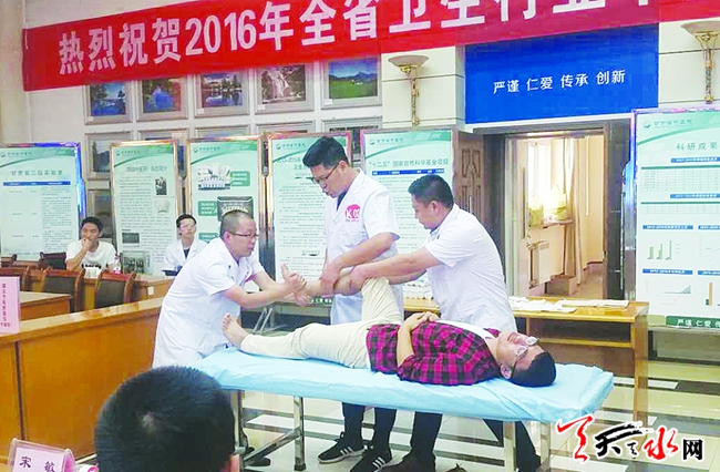 天天天水网【记者李旺旺】9月28—29日,由甘肃省卫计委主办,甘肃省中医院、甘肃省中医药学会骨伤专业委员会承办的2016年全省卫生行业中医正骨技能大赛在甘肃省中医院隆重举行。全省18支代表队、54名选手参赛。天水市中医医院代表队荣获团体一等奖,队员胡建锋、王春晓、姜徽均荣获个人一等奖,谢培钧荣获优秀指导老师奖。