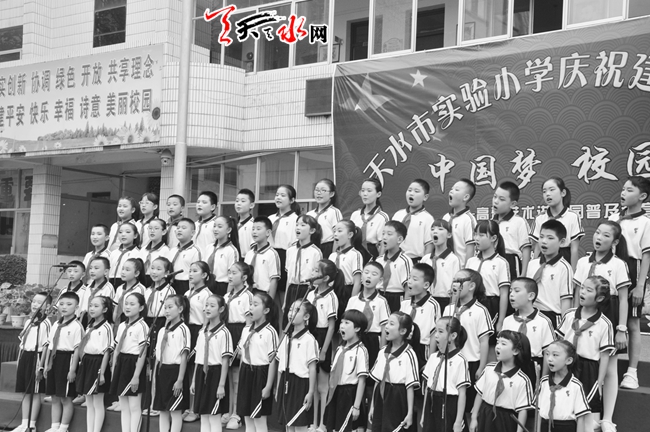 近日,由市教育局、市文化和旅游局主办的“中国梦 校园情”高雅艺术进校园普及教育活动在市实验小学举行,市歌舞团、市艺术学校的演员与实验小学的学生同台演出,在载歌载舞中感受高雅艺术的魅力。(记者蔚军平 摄)
