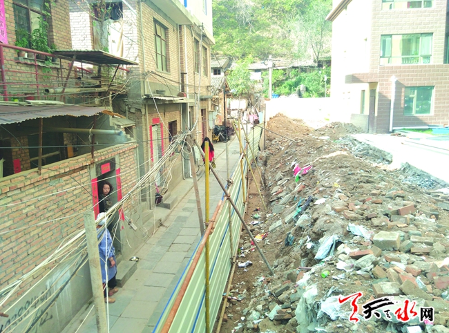 曹女士告诉记者,她家和其他一些居民在巷道内居住多年,门前这段被拆的围墙系原火柴厂的围墙,墙高3米多,距自家门前不足2米。几年前,天水飞天房地产开发有限公司在原火柴厂开发建房,小区建成后将他们门前的这堵墙加高了1米,居民家的采光顿时被加高的围墙挡住了,原先一楼室内白天很亮堂,围墙加高后房里整天黑漆漆的,下午4时后还必须开灯。几家居民虽然很气愤,但也一直忍气吞声。今年9月中旬,开发商拆除这段围墙进行施工,她询问得知,开发商将在此处建3层的楼房。居民们知道情况后十分不满:3层楼房盖起后将与居民的房屋间距不足2米,楼高还达10米左右,严重影响他们几户人的采光,于是受影响的几户居民阻止了对方施工。后经打听得知,开发商欲建的3层楼并未得到相关部门的审批,属于未经规划的违法建筑,于是她向相关部门进行了反映,相关部门派人了解情况后,对开发商的施工行为进行了制止,开发商便在拆除的围墙处临时进行了隔挡。孰料,国庆节期间,开发商又开始施工,居民与施工人员发生不快,虽然双方进行了协商,但问题一直没有得到合理解决。“如果任凭10米高的3层楼建起,我们的房中将见不到一丝阳光,常年处于阴暗潮湿之中,80多岁的老父亲在这样的环境下如何生活?”曹女士说。
