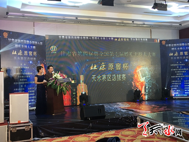 天天天水网10日10时讯 【记者 甄娜】甘肃省第四届暨全国第七届婚礼主持人大赛杜康原窖杯天水赛区选拔赛在麦积区地质宾馆举行,15位选手将进行角逐。