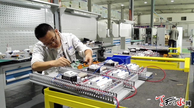 10月8日,天水电气传动研究所的技术人员正在安装控制板。天水电气传动研究所围绕着企业的发展和技术创新,及时调整产品结构,在国家重点发展的战略性新型产业里,找到自己的定位和出路,在主打产品石油钻机电传动系统之外,围绕新能源、智慧城市等新型产业开展科技创新,确保近三年经营保持稳定增长。(天水日报记者冯丽娟 摄)