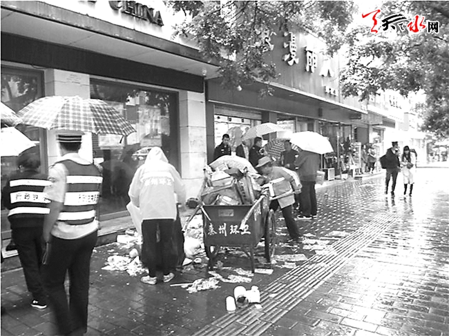 国庆期间,秦州区环卫处全面加强城市环境卫生管理作业。节日期间,该处对整改不到位的7家门店、1家物业小区及垃圾随意排放的28家经营业主进行了处罚,查处各类渣土违章运输行为42起。(吕宏伟 摄)