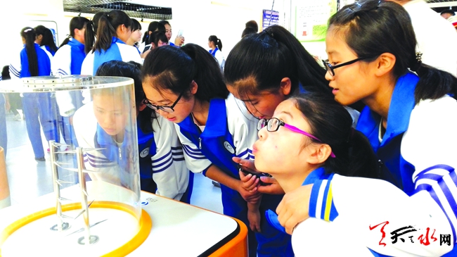 近日,武山县中学生在县文体中心参观中国流动科技馆巡展,零距离体验科技魅力。该巡展以“体验科学”为主题,设置有声光体验、电磁探秘、运动旋律、数学魅力等主题展区。武山巡展将持续到12月,其间该县青少年及社会公众均可以到县文体中心体验、参与科学实践。(天水日报记者何郁 摄)