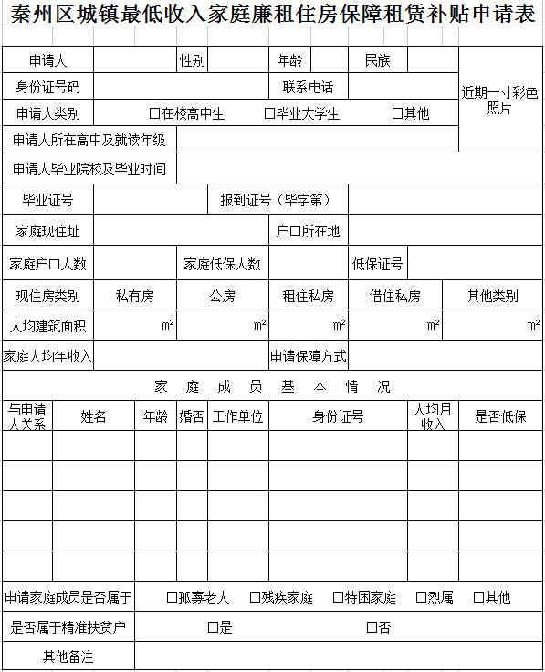 附:秦州区城镇低收入家庭廉租住房保障租赁补贴申请审批书