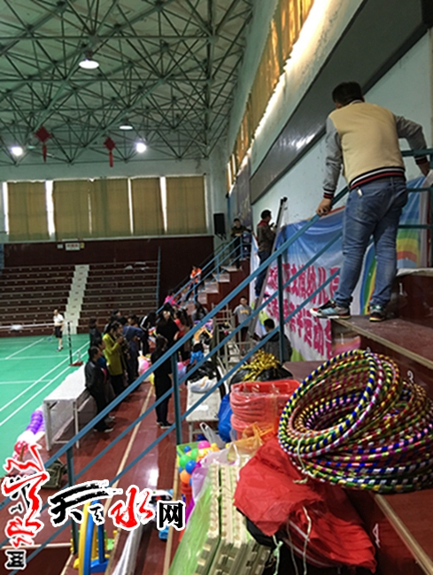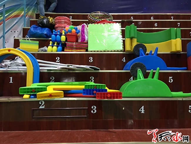 天天天水网15日17时讯【记者甄娜】在秦州区南山体育馆,文博幼儿园的老师们正在为明天举办的第三届秋季亲子运动会做着准备。