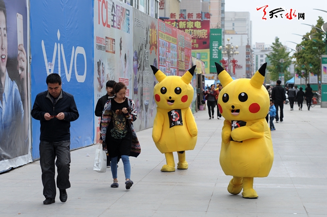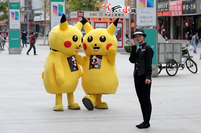 天水街头:卡通人为商家做宣传