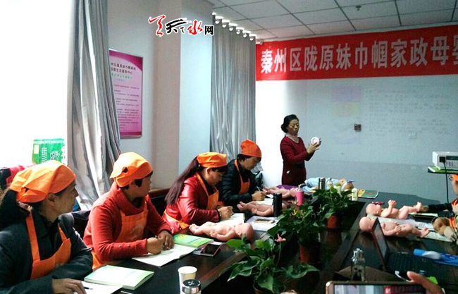 10月13日,秦州区一家政服务中心举办“陇原月嫂”培训班。5年来,我市向北京、天津、上海等地有组织输转就业妇女75400人,创劳务收入28亿元,有力推动了妇女自主创业,有效拉动了妇女就业。(天水日报记者姬旺芳 实习生徐媛 摄)