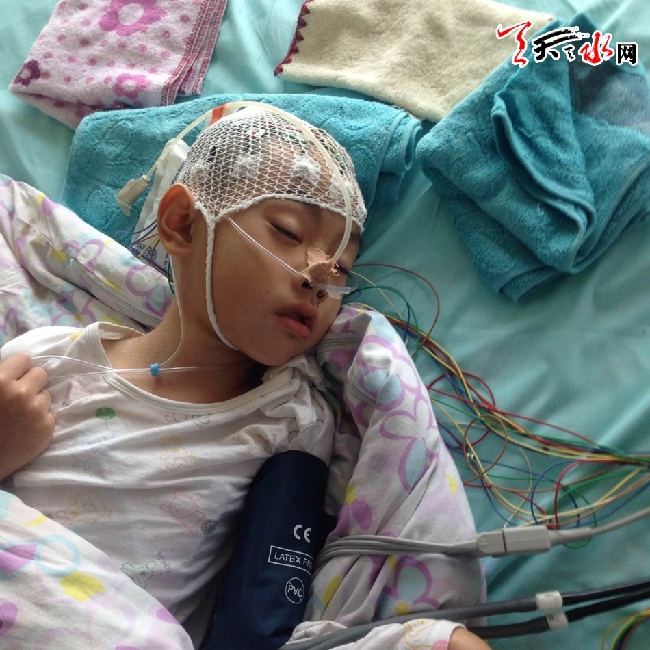 ▲患重症病毒性脑炎的8岁女孩邵可一直处于昏迷状态
