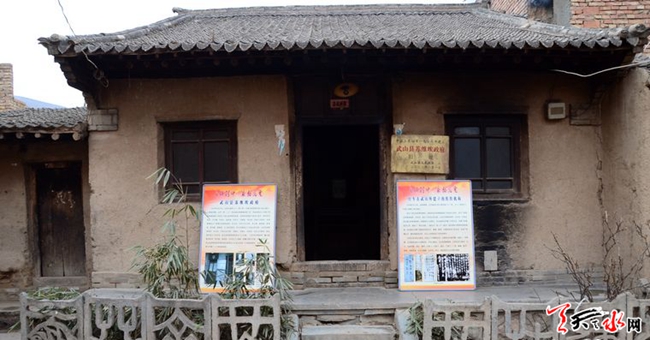 红军在武山播下了革命火种,留下了无数镌刻着共产党人光辉足迹的红色遗迹,武山县苏维埃政府就是其中的一处。9月20日下午,记者在武山县红军长征强渡渭河纪念馆韦晨灿等几位干部的带领下,由武山县城出发,几经峰回路转,车行约一个小时,来到了坐落在渭水河畔的文明村——鸳鸯镇颉家门村。这是个很普通的村子,村民安居乐业、怡然自得。就在这样一个小山村里,80年前的一天,红军途经这里,播下了红色的革命种子。车行到村子中间,我们沿着一条水泥巷道步行了一百米左右,看到一个不起眼的铁门,韦晨灿告诉记者,我们的采访地到了,穿过两道铁门,来到一所方方正正的院落里,映入眼帘的是一间年代已久的土坯房,外墙上挂着“武山县苏维埃政府”旧址铜牌一面,韦晨灿指着醒目的牌子,很自豪地说:“看呀,这是红四方面军在天水境内成立的第一个苏维埃政府,也是红军在天水境内建立的唯一一个苏维埃政权。”