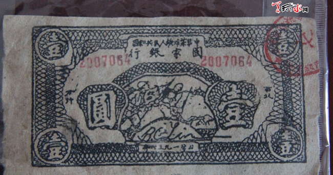 ▲1936年中共苏维埃人民共和国国家银行发行的纸币