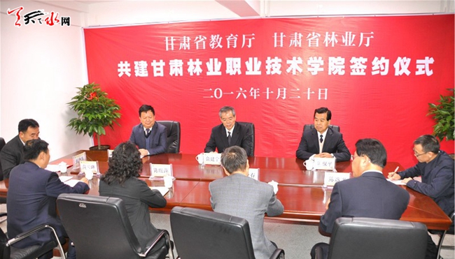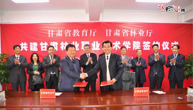 天天天水网讯【记者何郁】10月20日,甘肃省教育厅、省林业厅在甘肃林业职业技术学院签约,协议共建甘肃林业职业技术学院。