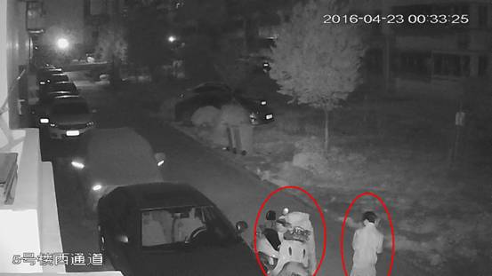 2016年4月23日0时44分,两名犯罪嫌疑人在麦积区道北天禧苑作案后骑被盗电动摩托车逃离现场。