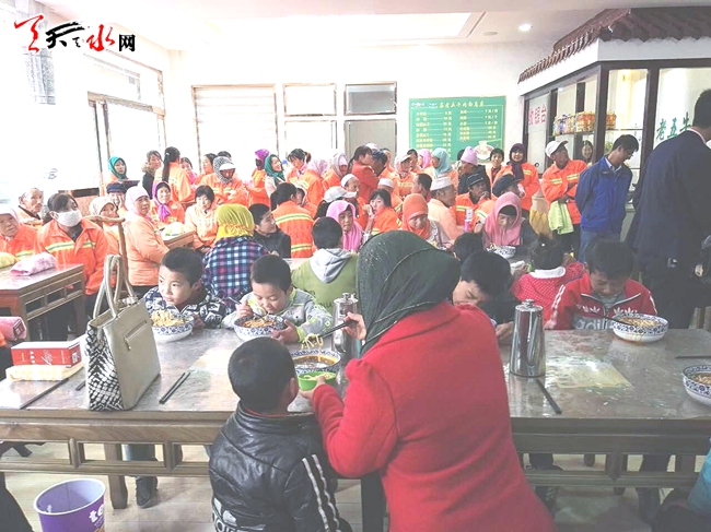 10月23日恰逢霜降节气,天气阴冷,可张家川县张川镇马老五牛肉面馆内人头攒动,热闹非凡,原来是张家川县民族商会举行的爱心公益活动“墙上有爱”在这里如火如荼地开展,上百名环卫工人和孤儿院的孩子品尝了热气腾腾的牛肉面,感受着社会爱心人士的无私大爱。