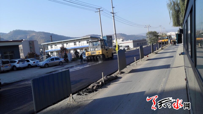 天天天水网31日17时讯【记者 杨晓斌】10月31日,记者经过316国道皂郊段时看到,316国道路面维修工程皂郊镇下寨子至娃哈哈水厂(冰凌寺附近)的路面的半幅铺油工程即将完成,另外半幅的维修工程即将启动。