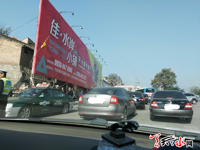 天天天水网31日16时讯【记者苏中豹】今天是农历十月初一,依本地习俗要给逝者上坟送寒衣,因此,从早晨开始秦州区泰山路口到殡仪馆一路便大小车辆排起了长龙,幸亏有交警不断指挥疏导,使得车辆一直有序前行。