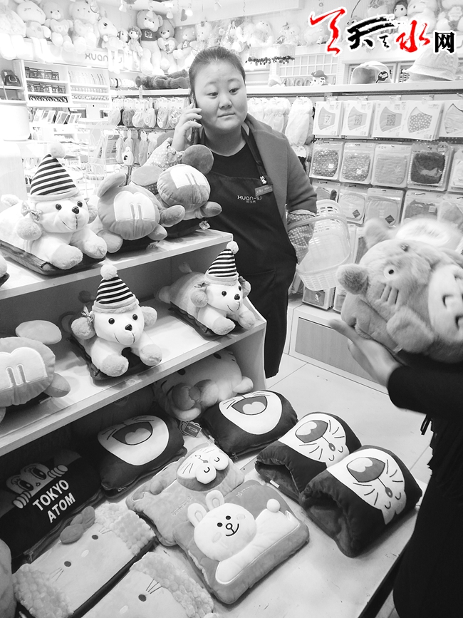 28日晚上7时许,记者来到秦州区中华东路步行街口看到,一位中年妇女支着一个小摊专卖暖手宝,记者上前询问,最贵的一个45元,最便宜的一个25元。