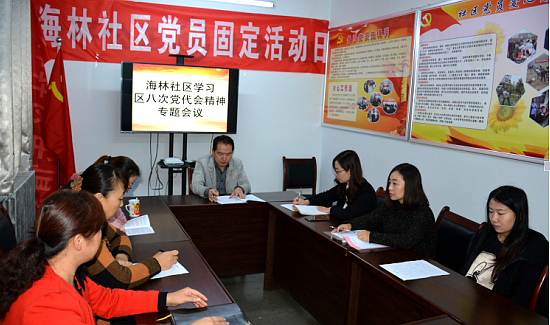 为了深入学习贯彻落实好区第八次党代会精神,近日来,秦州区七里墩街道海林社区加大宣传力度,充分利用辖区电子显示屏、黑板报、挂横幅等形式,积极开展了宣传工作。同时,11月2日上午,再次组织社区党员干部利用社区理论宣讲课堂开展了区八次党代会精神专题学习会。