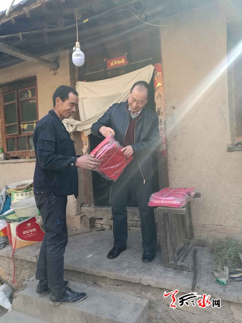 天天天水网15日11时讯【记者姬旺芳 通讯员程晨】11月15日,市民政局领导带领慰问工作组深入武山县山丹镇任山村开展“送温暖”活动,该村海拔高、冬季持续低温、自然环境极其恶劣,市民政局自筹资金购买191套棉衣发放到60岁以上老人手中,帮助他们顺利度过寒冬,送去了民政系统的关怀和温暖,得到当地群众的赞誉。