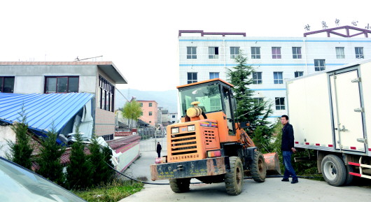 甘泉中心学校综合楼施工单位负责人让先生给记者讲述说,上周该工地正在打混凝土,10日傍晚天刚黑,商砼车送最后一车材料时挂上了电缆和一根钢丝线,致使两根水泥电杆和一根电信木杆断了,变压器开始漏油并停电。当时,商砼车所在的公司得知情况后立即与供电部门进行联系抢修电路,并出资第二天就恢复了供电,同时也叫来了保险公司的理赔人员对损坏现场进行调查、拍照、定损,保险公司人员已经来过好几次了。到现在,村民将铲车挡在出入学校的必经路口,阻碍施工车辆通行,造成这5天来,水泥、沙子等施工材料不能直接送进工地上,只能从学校前门绕小道用三轮车转运,从而增加了工程的建筑成本,影响了工程的施工进度,延误了工期。没办法,他们15日早上便向辖区派出所报案要求解决。